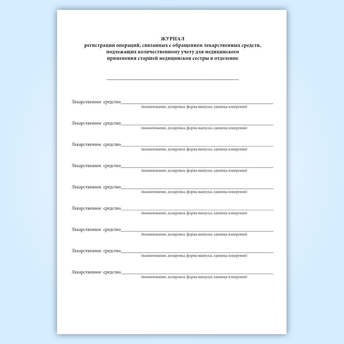 Журнал регистрации операций, связанных с обращением лекарственных средств, подлежащих количественному учету для медицинского применения старшей медицинской сестры в отделение в Сургуте купить