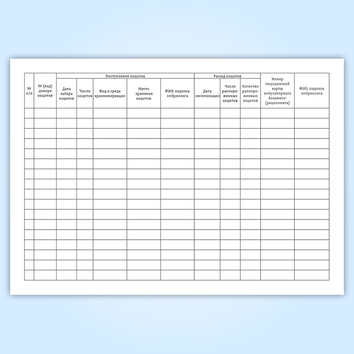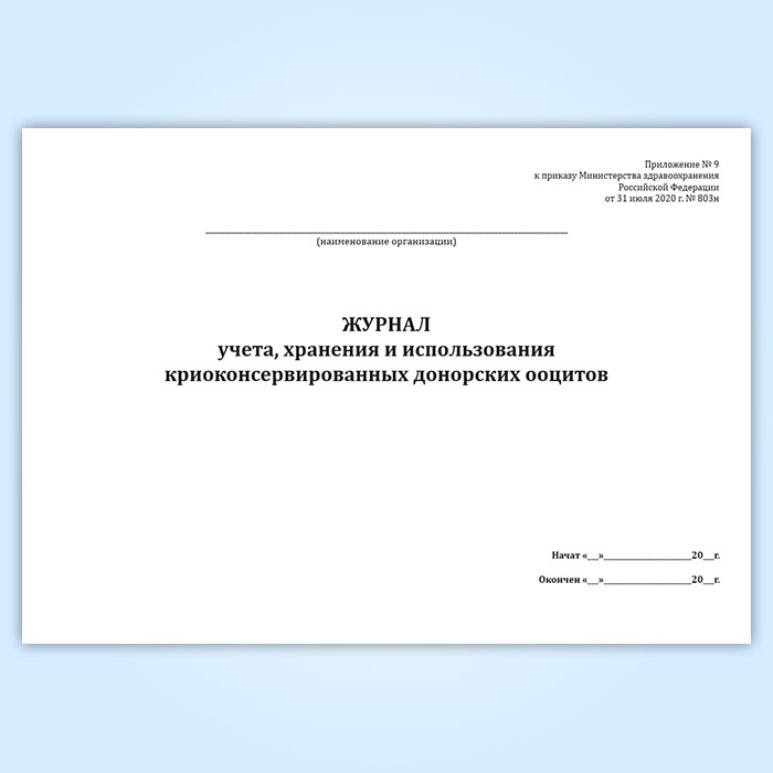 Журнал учета, хранения и использования криоконсервированных донорских ооцитов в Сургуте купить