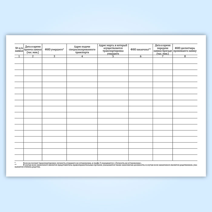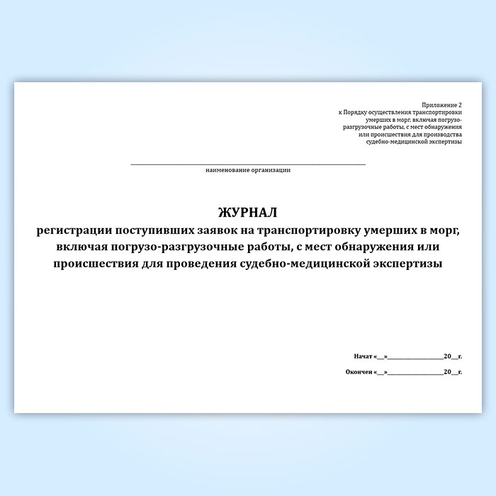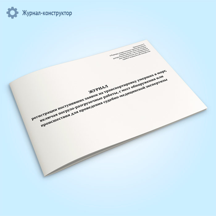 Журнал регистрации поступивших заявок на транспортировку умерших в морг, включая погрузо-разгрузочные работы, с мест обнаружения или происшествия для проведения судебно-медицинской экспертизы в Сургуте купить