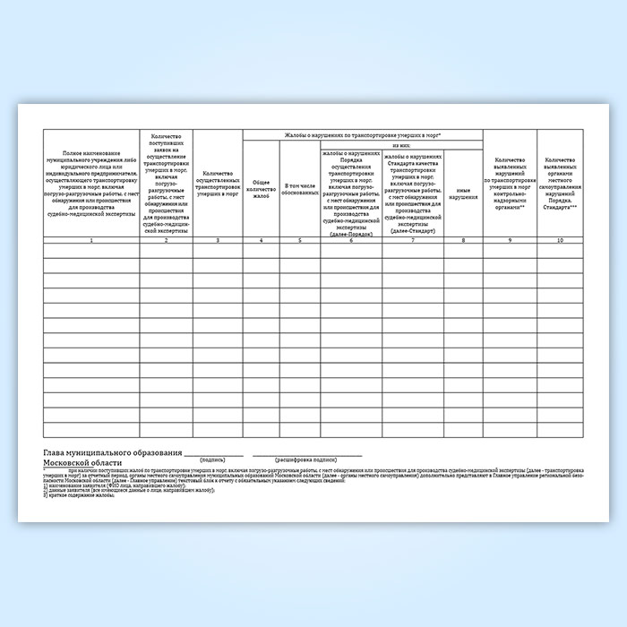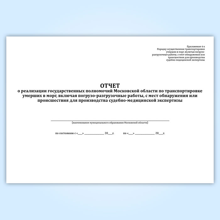 Отчет о реализации государственных полномочий Московской области по транспортировке умерших в морг, включая погрузо-разгрузочные работы, с мест обнаружения или происшествия для производства судебно-медицинской экспертизы в Сургуте купить