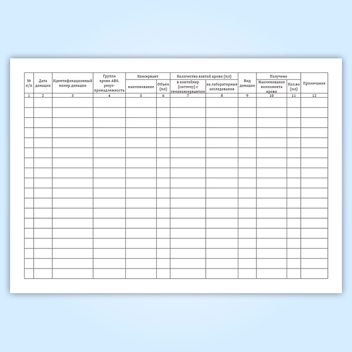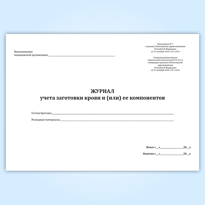 Журнал учета заготовки крови и (или) ее компонентов (форма № 411/у) в Сургуте купить