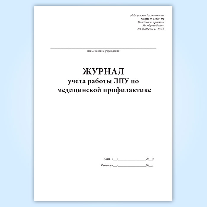 Журнал учета работы ЛПУ по медицинской профилактике (форма 038у-02) в Сургуте купить
