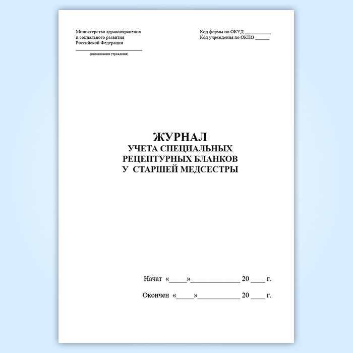 Журнал учета специальных рецептурных бланков у старшей медсестры в Сургуте купить