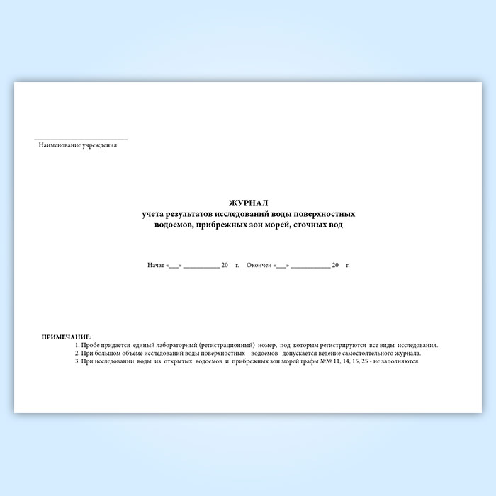 Журнал учета результатов исследований воды поверхностных водоемов, прибрежных зон морей, сточных вод (форма № 324-у) в Сургуте купить