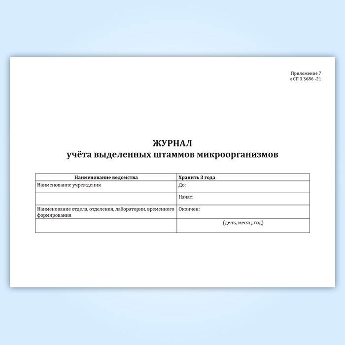 Журнал учета выделенных штаммов микроорганизмов (СанПиН 3.3686-21) в Сургуте купить