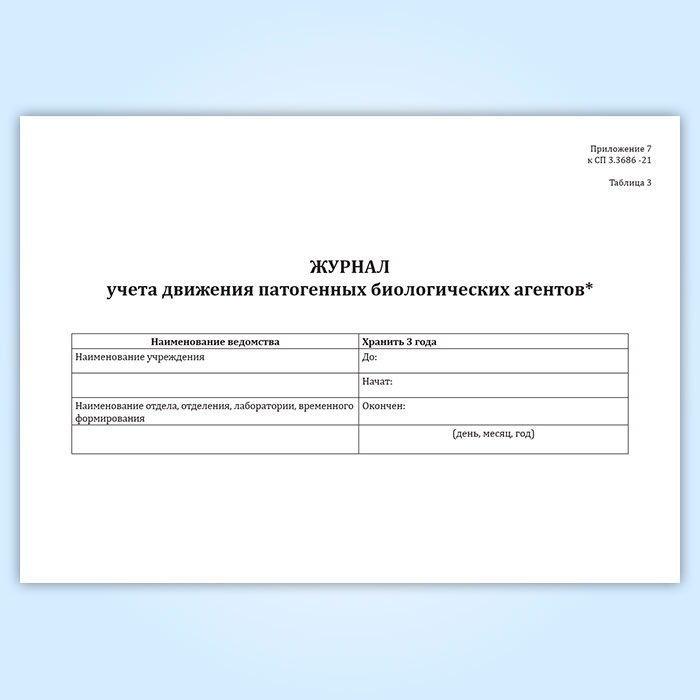 Журнал учета движения патогенных биологических агентов (СанПиН 3.3686-21) в Сургуте купить