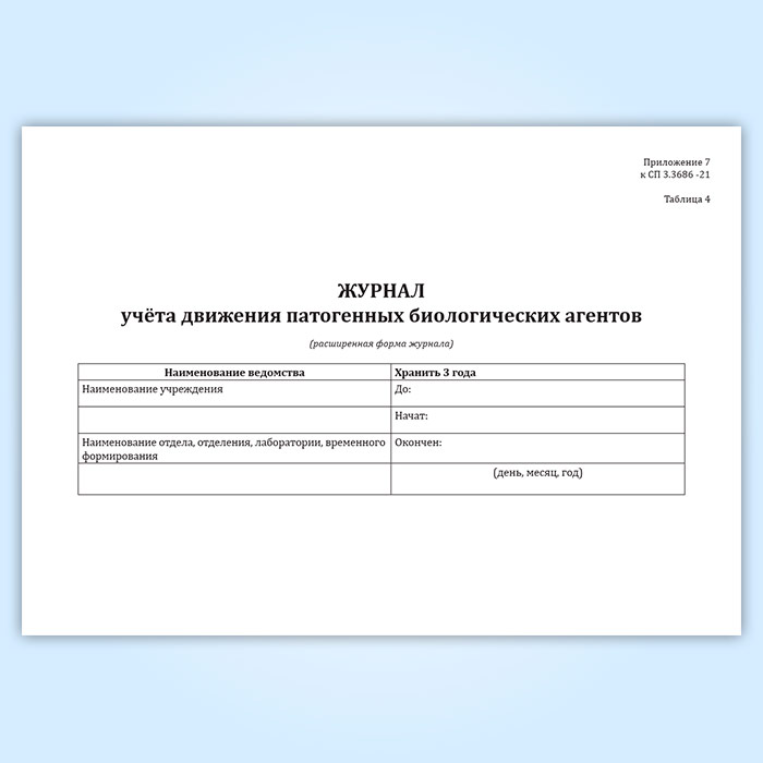 Журнал учета движения патогенных биологических агентов (СанПиН 3.3686-21, расширенная форма) в Сургуте купить