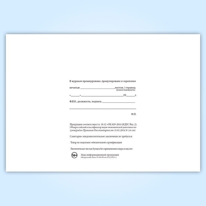 Вы получаете печатную продукцию прошнурованной и c местом для вашей печати в соответствии с действующими нормативными документами: