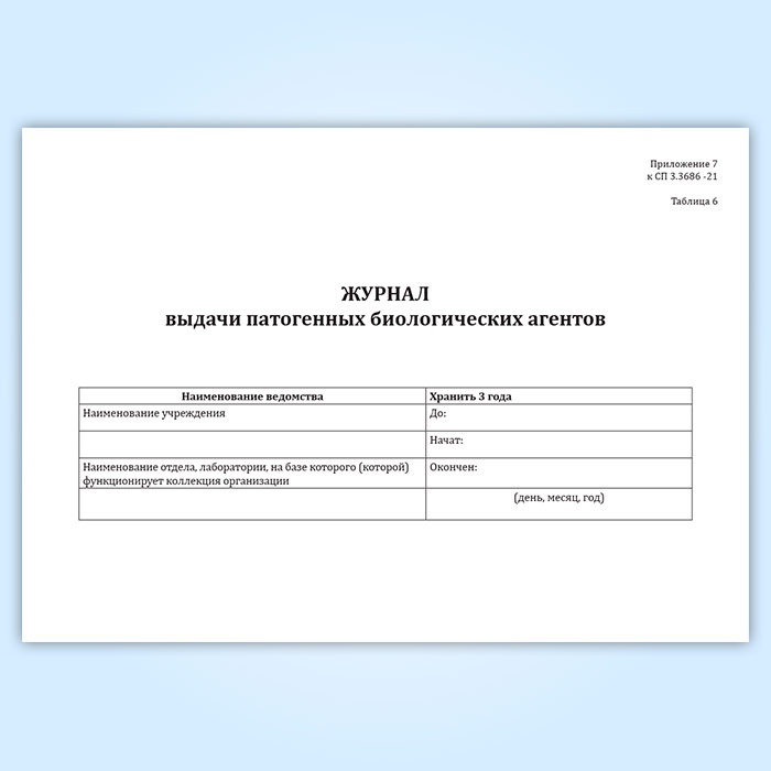 Журнал выдачи патогенных биологических агентов (СанПиН 3.3686-21) в Сургуте купить