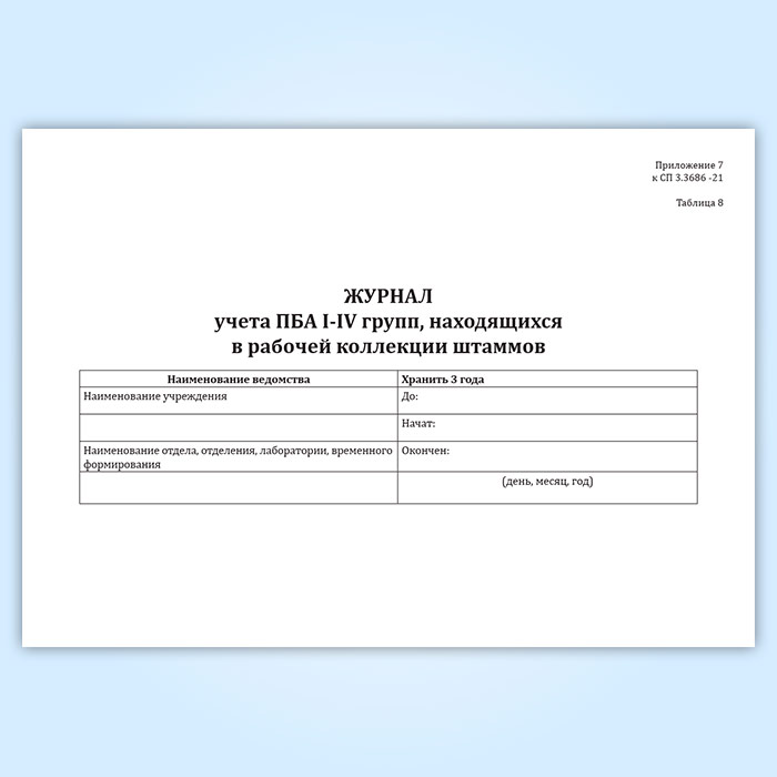 Журнал учета ПБА I-IV групп, находящихся в рабочей коллекции штаммов в Сургуте купить