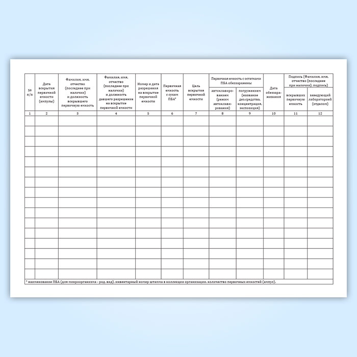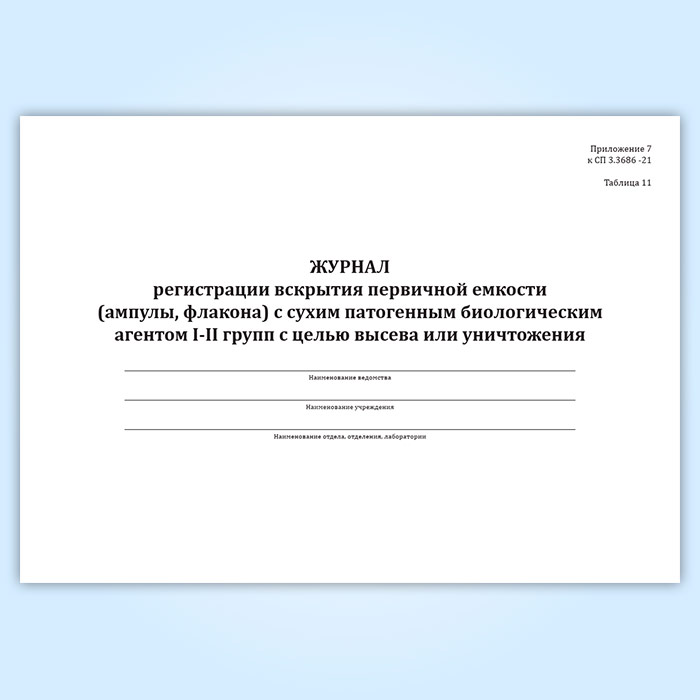 Журнал регистрации вскрытия первичной емкости (ампулы, флакона) с сухим патогенным биологическим агентов I-II групп с целью высева или уничтожения в Сургуте купить