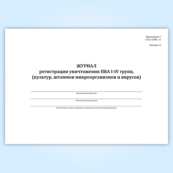 Журнал регистрации уничтожения ПБА I-IV групп, (культур, штаммов микроорганизмов и вирусов) в Сургуте купить