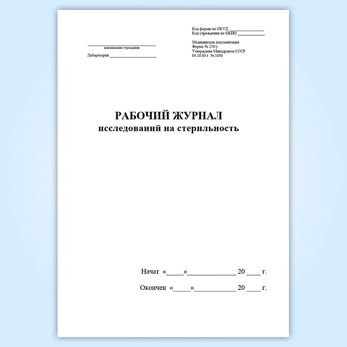 Рабочий журнал исследований на стерильность (форма 258/у) в Сургуте купить