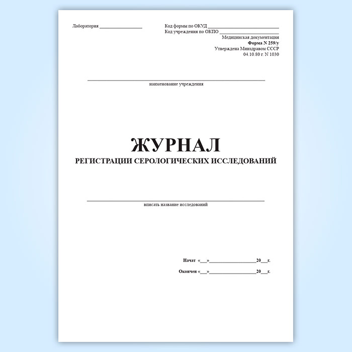 Журнал регистрации серологических исследований (форма 259/у) в Сургуте купить
