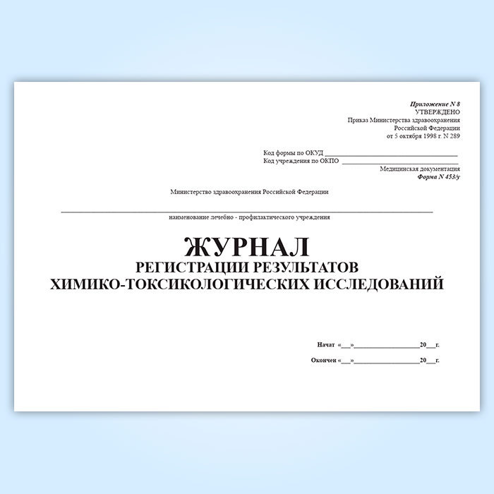 Журнал регистрации результатов химико-токсикологических исследований (форма 453у-06) в Сургуте купить