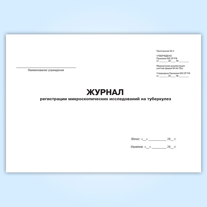 Журнал регистрации диагностического материала, собранного для микроскопических исследований на туберкулез (форма № 04-1-ТБ/у) в Сургуте купить