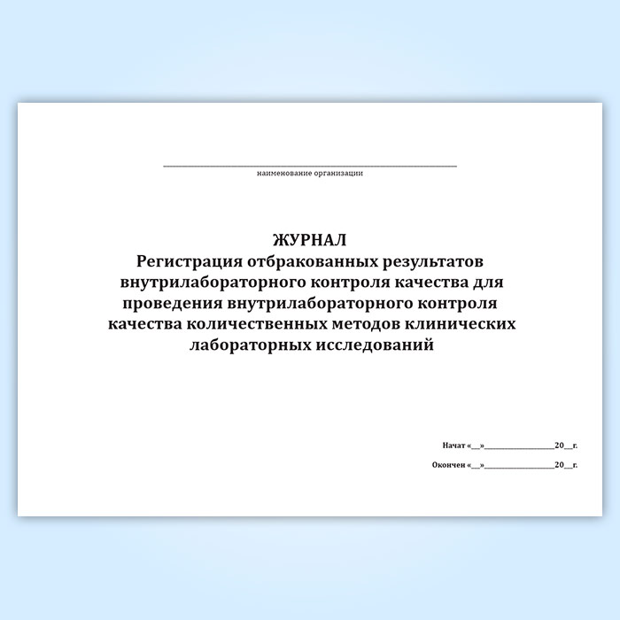 Журнал «Регистрация отбракованных результатов внутрилабораторного контроля качества для проведения внутрилабораторного контроля качества количественных методов клинических лабораторных исследований» в Сургуте купить