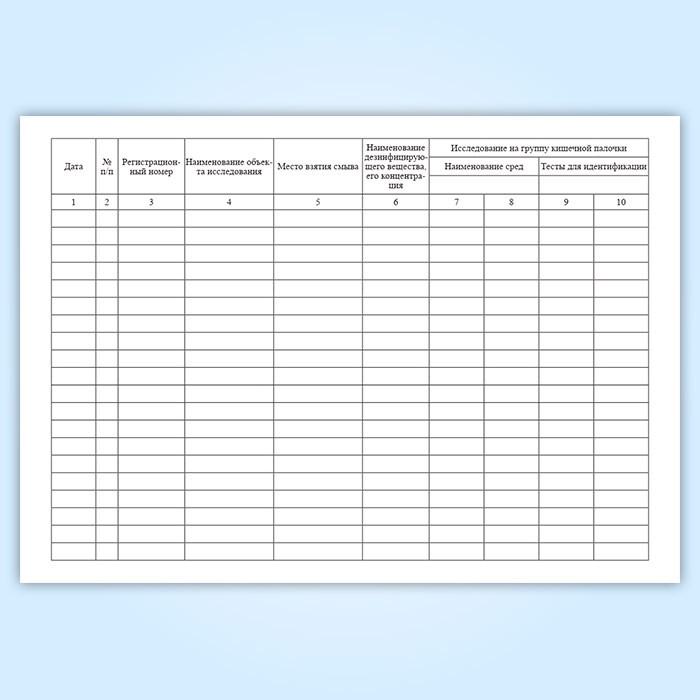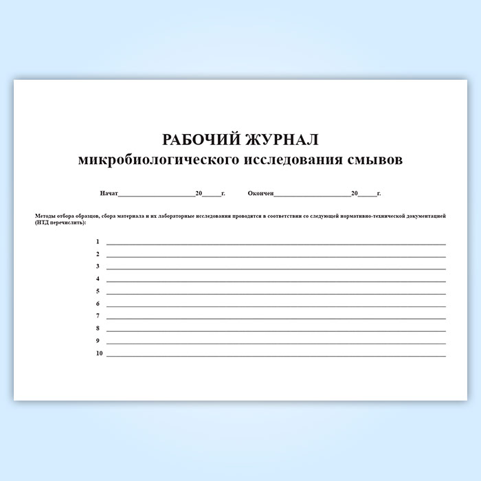 Рабочий журнал микробиологического исследования смывов (форма № 381у) в Сургуте купить