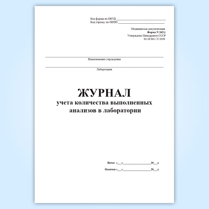 Журнал учета количества выполненных анализов в лаборатории (форма 262/у) в Сургуте купить