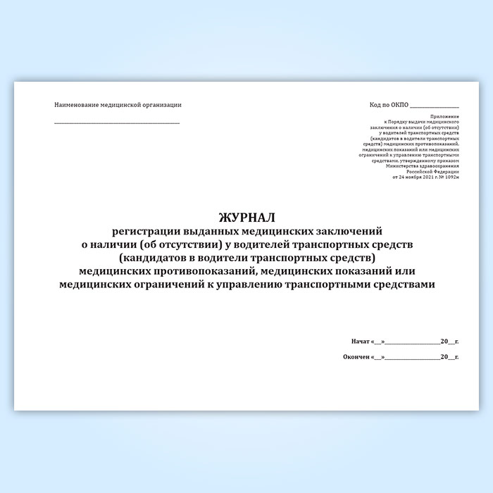 Журнал регистрации выданных медицинских заключений о наличии (об отсутствии) у водителей транспортных средств (кандидатов в водители транспортных средств) медицинских противопоказаний, медицинских показаний или медицинских ограничений к управлению транспортными средствами в Сургуте купить