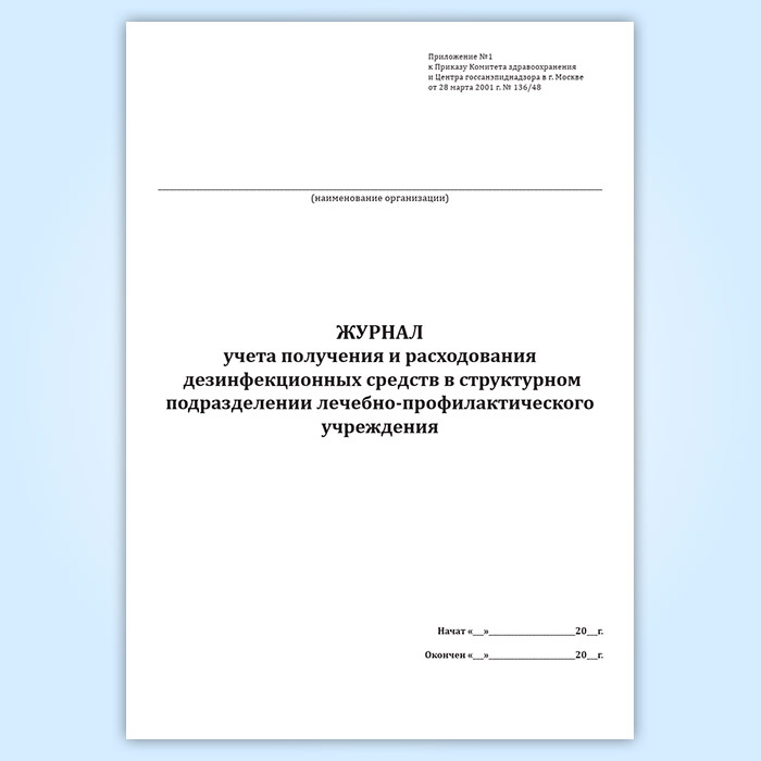 Журнал учета получения и расходования дезинфекционных средств в структурном подразделении лечебно-профилактического учреждения в Сургуте купить