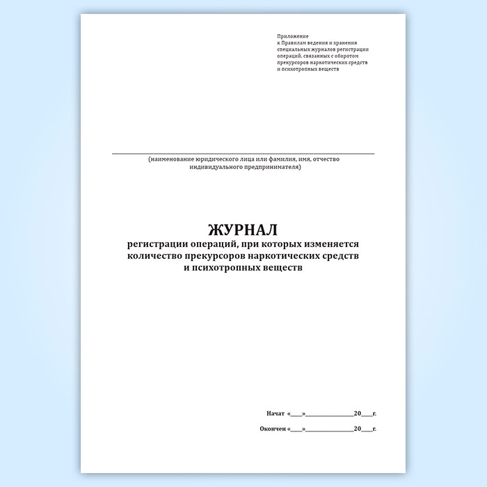 Журнал регистрации операций, при которых изменяется количество прекурсоров наркотических средств и психотропных веществ в Сургуте купить