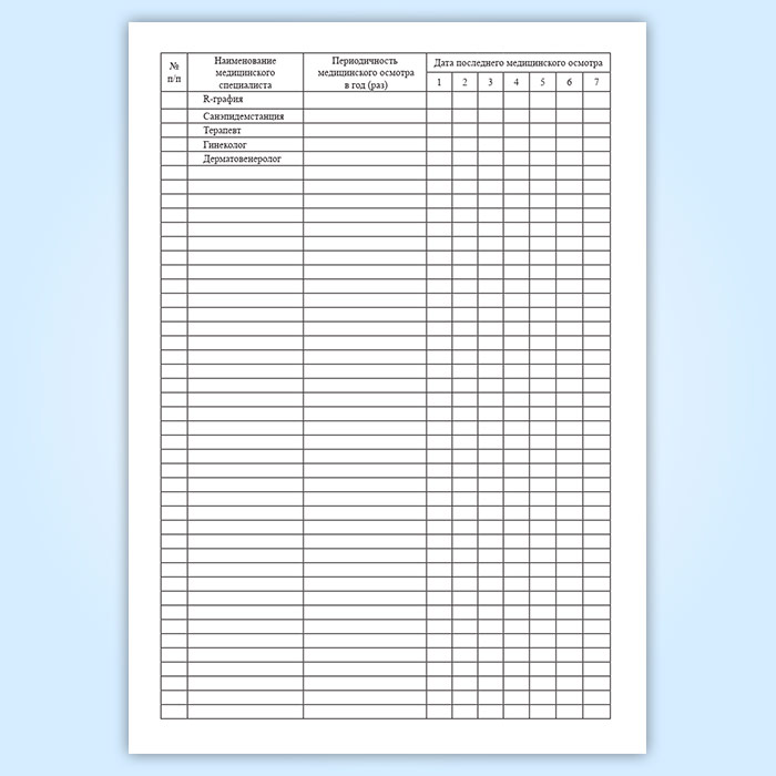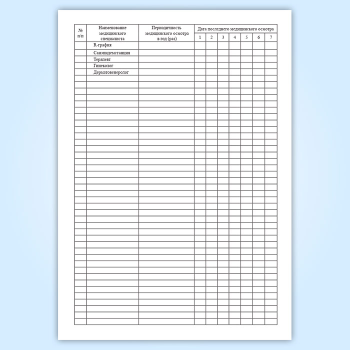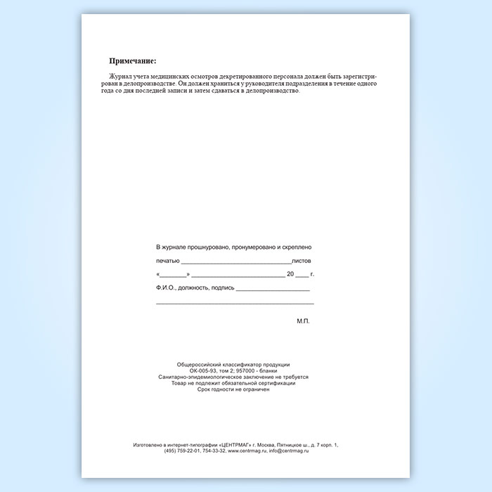 Журнал учета медицинских осмотров декретированного персонала в Сургуте купить