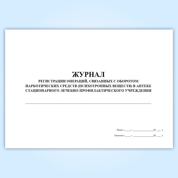 Журнал регистрации операций, связанных с оборотом наркотических средств и психотропных веществ в аптеке медицинской организации в Сургуте купить