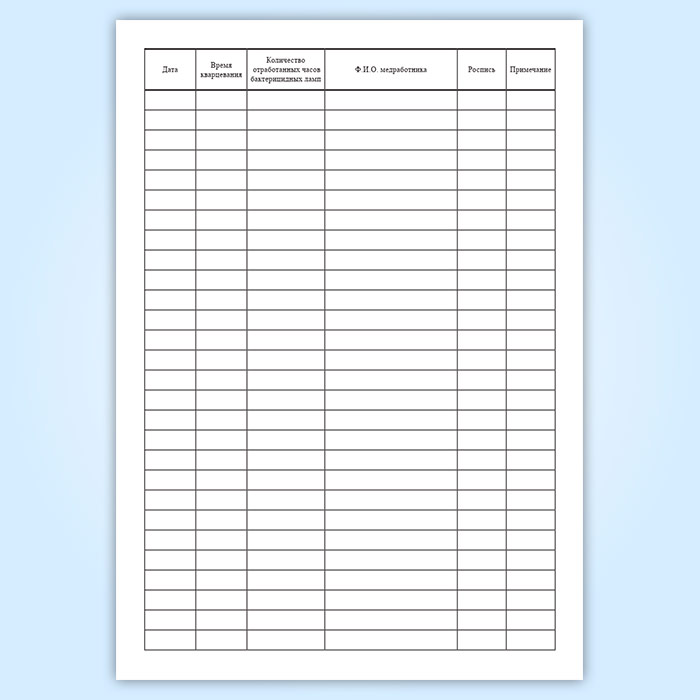 Журнал регистрации и контроля работы бактерицидной лампы в Сургуте купить
