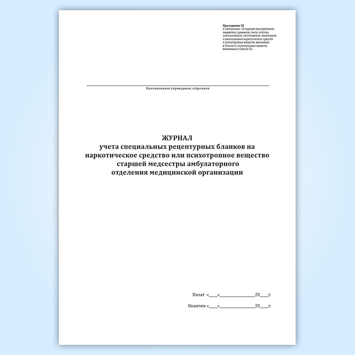 Журнал учета специальных рецептурных бланков на наркотическое средство или психотропное вещество старшей медсестры амбулаторного отделения медицинской организации в Сургуте купить
