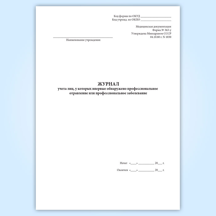 Журнал учета лиц, у которых впервые обнаружено профессиональное отравление или профессиональное заболевание (форма 363-у) в Сургуте купить