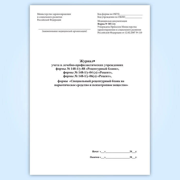 Журнал учета в лечебно-профилактических учреждениях формы 148-1/у-88 «Рецептурный бланк», 148-1/у-04(л) «Рецепт», 148-1/у-06(л) «Рецепт», формы «Специальный рецептурный бланк на наркотическое средство и психотропное вещество форма» в Сургуте купить