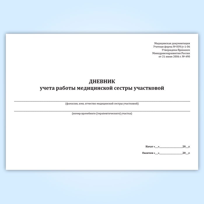 Дневник учета работы медицинской сестры участковой (форма 039/у-1-06) в Сургуте купить