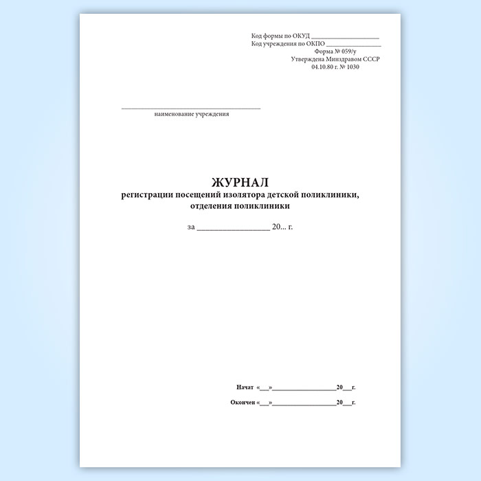 Журнал регистрации посещений изолятора детской поликлиники, отделения поликлиники (форма 059/У) в Сургуте купить