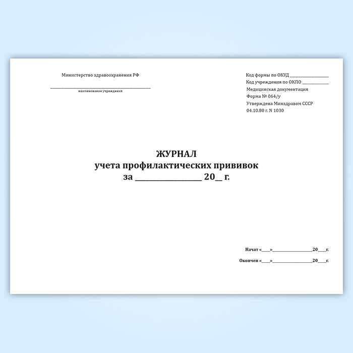 Журнал учета профилактических прививок (форма № 064/у) в Сургуте купить
