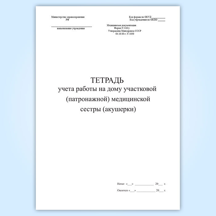 Тетрадь учета работы на дому участковой (патронажной) медицинской сестры (акушерки) (форма 116/у) в Сургуте купить