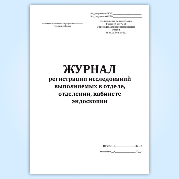 Журнал регистрации исследований выполняемых в отделе, отделении, кабинете эндоскопии (форма № 157/у-96) в Сургуте купить