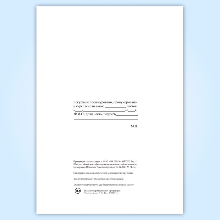 Вы получаете печатную продукцию прошнурованной и c местом для вашей печати в соответствии с действующими нормативными документами: