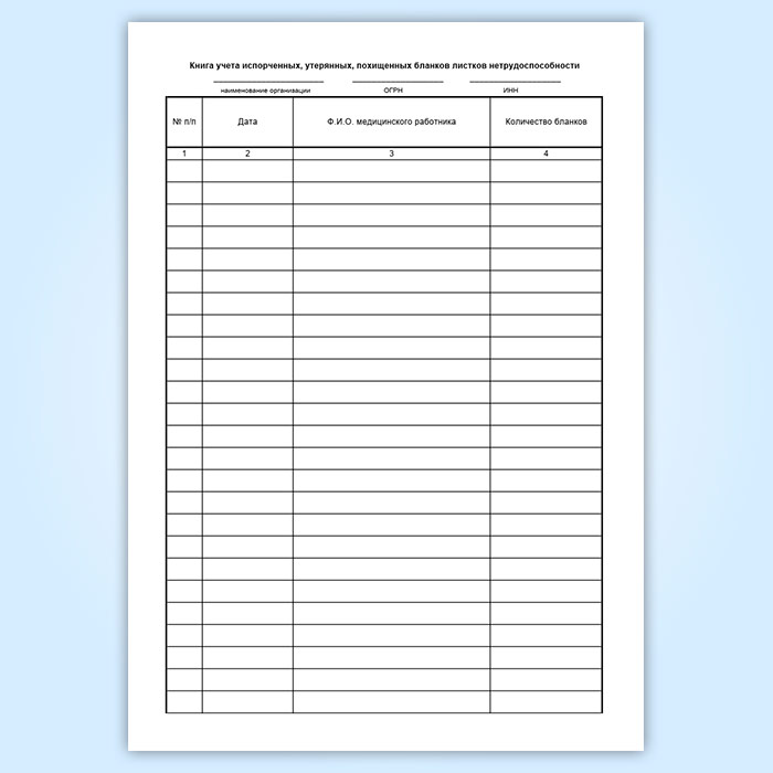 Книга учета испорченных, утерянных, похищенных бланков листков нетрудоспособности в Сургуте купить