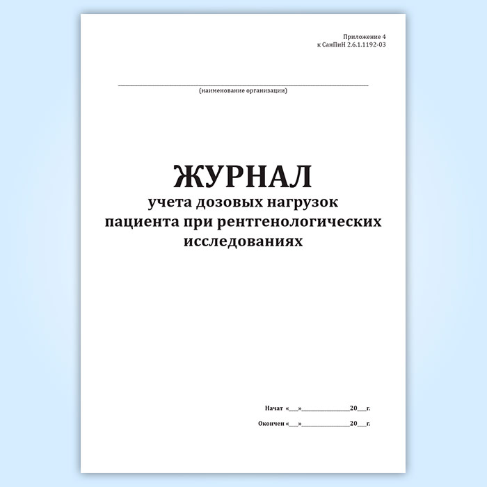 Журнал учета дозовых нагрузок пациента при рентгенологических исследованиях в Сургуте купить
