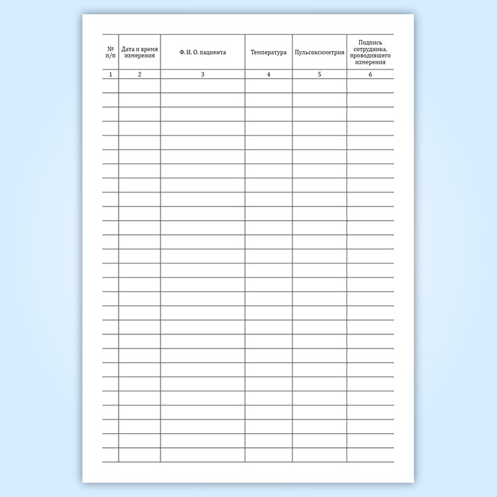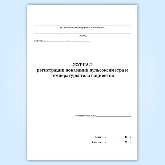 Журнал регистрации показаний пульсоксиметра и температуры тела пациентов в Сургуте купить