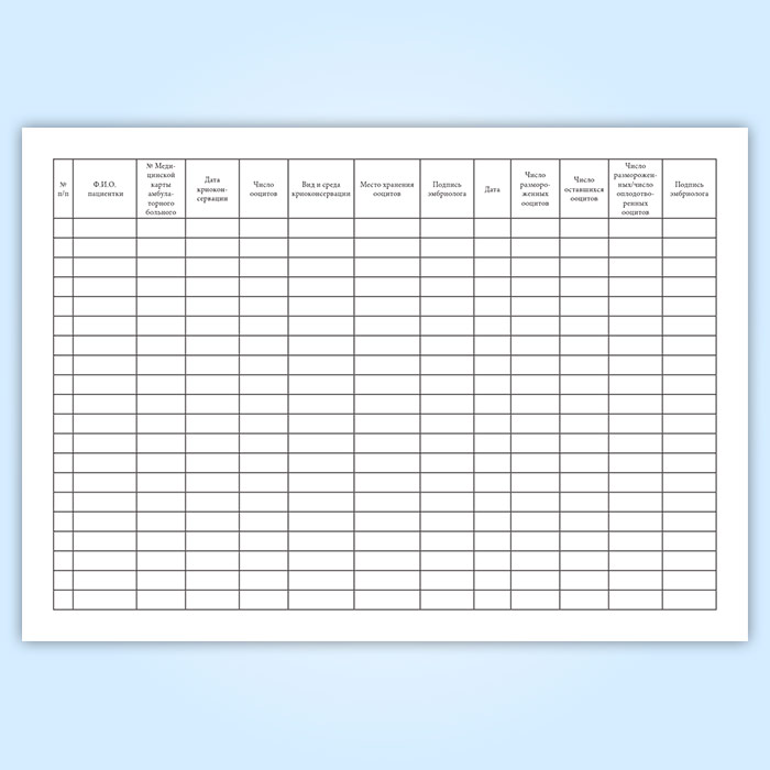 Журнал учета, хранения и использования криоконсервированных ооцитов пациенток в Сургуте купить