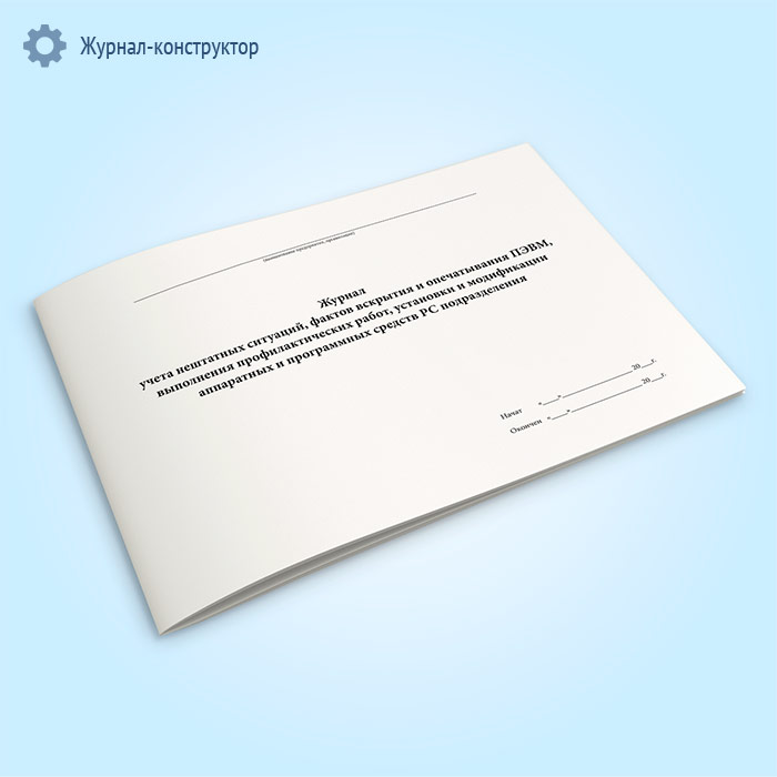 Журнал учета нештатных ситуаций, фактов вскрытия и опечатывания ПЭВМ, выполнения профилактических работ, установки и модификации аппаратных и программных средств РС подразделения в Сургуте купить
