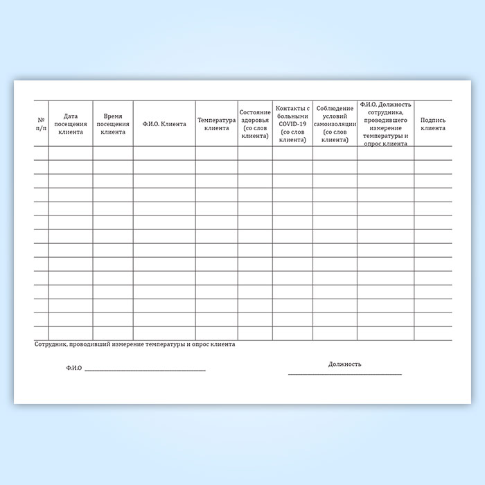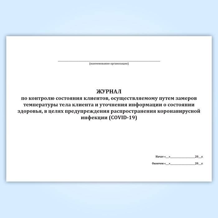 Журнал по контролю состояния клиентов, осуществляемому путем замеров температуры тела клиента и уточнения информации о состоянии здоровья, в целях предупреждения распространения коронавирусной инфекции (COVID-19) в Сургуте купить