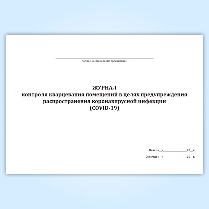 Журнал контроля кварцевания помещений в целях предупреждения распространения коронавирусной инфекции (COVID-19) в Сургуте купить