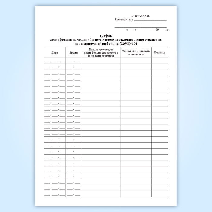 Журнал графика дезинфекции помещений в целях предупреждения распространения коронавирусной инфекции (COVID-19) в Сургуте купить