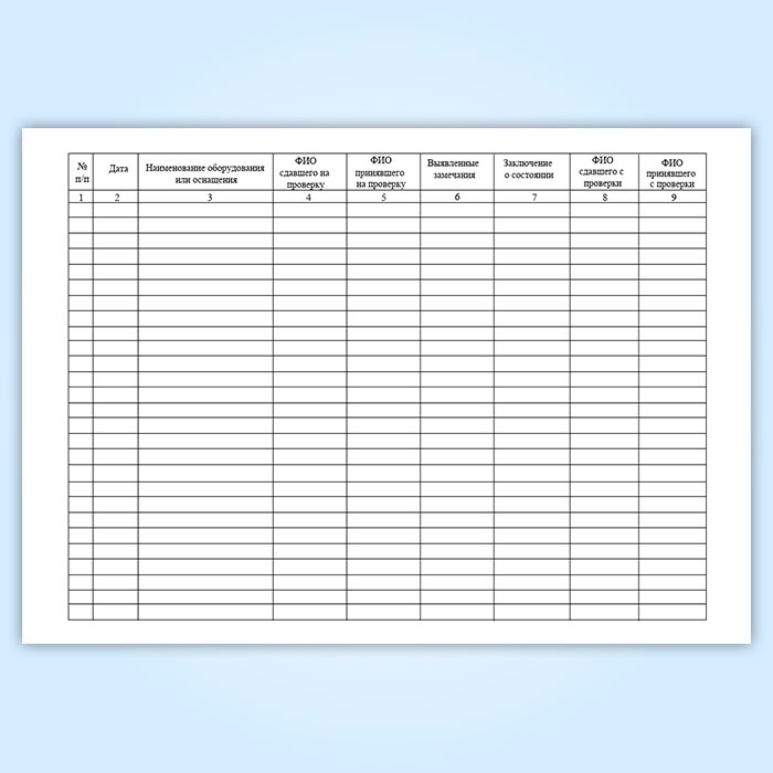Журнал регистрации сдачи и выдачи оборудования и средств технического оснащения НАСФ на проверку в Сургуте купить