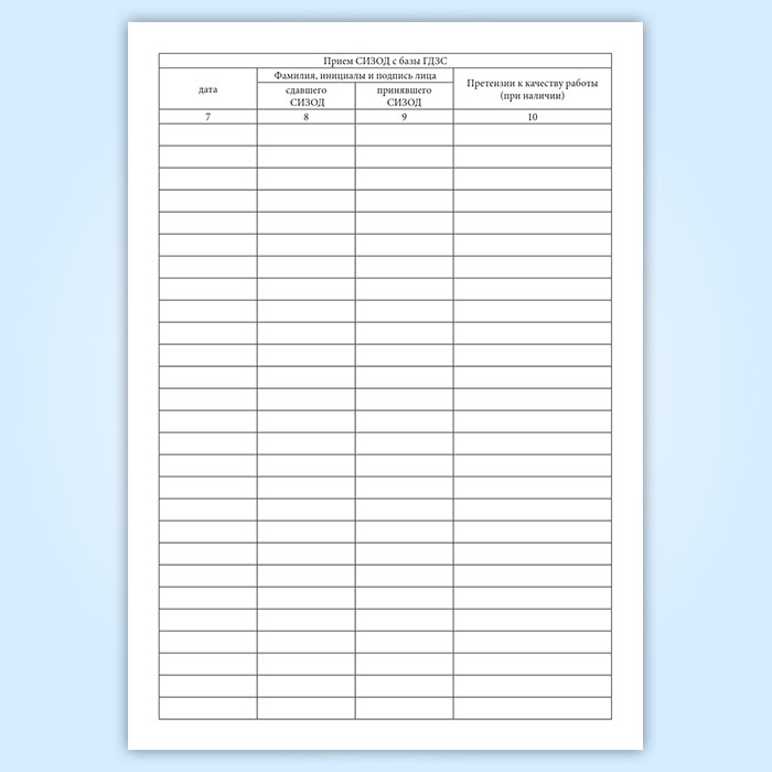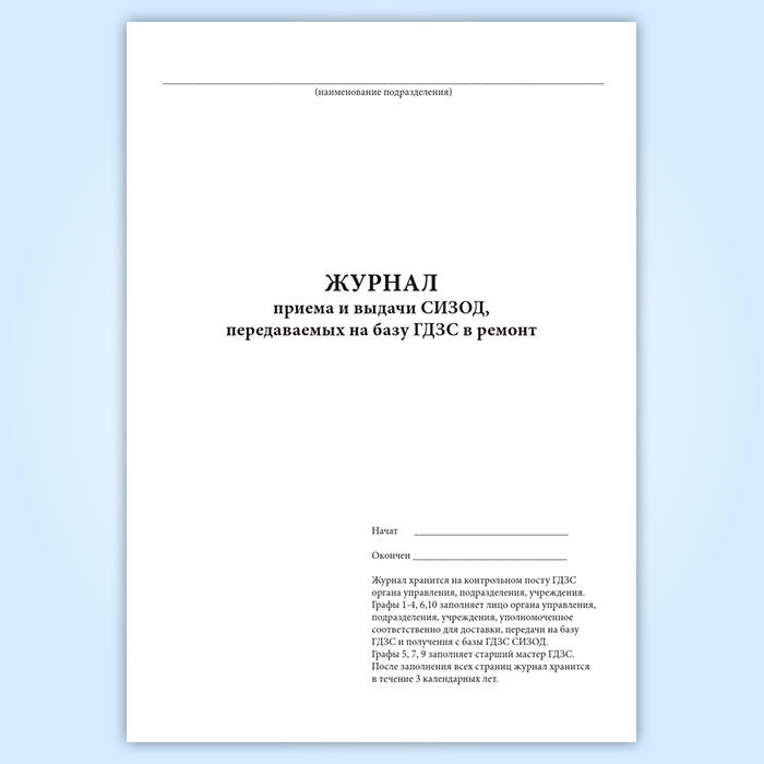 Журнал приема и выдачи СИЗОД, передаваемых на базу ГДЗС в ремонт в Сургуте купить