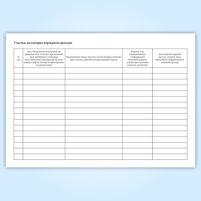 Журнал учета участков, перекрытых проездов и неисправного противопожарного водоснабжения, расположенных в районе выезда подразделения пожарной охраны в Сургуте купить
