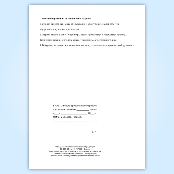 Журнал осмотра основного оборудования и арматуры резервуара (нефтепродукты) в Сургуте купить